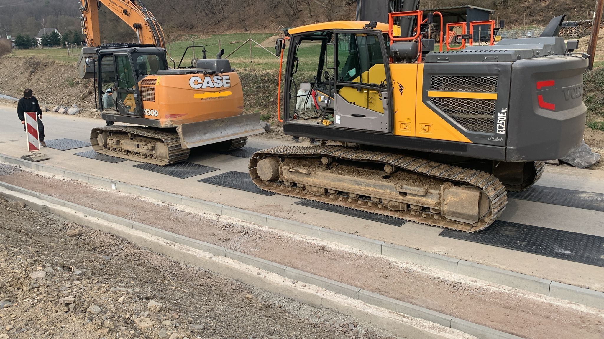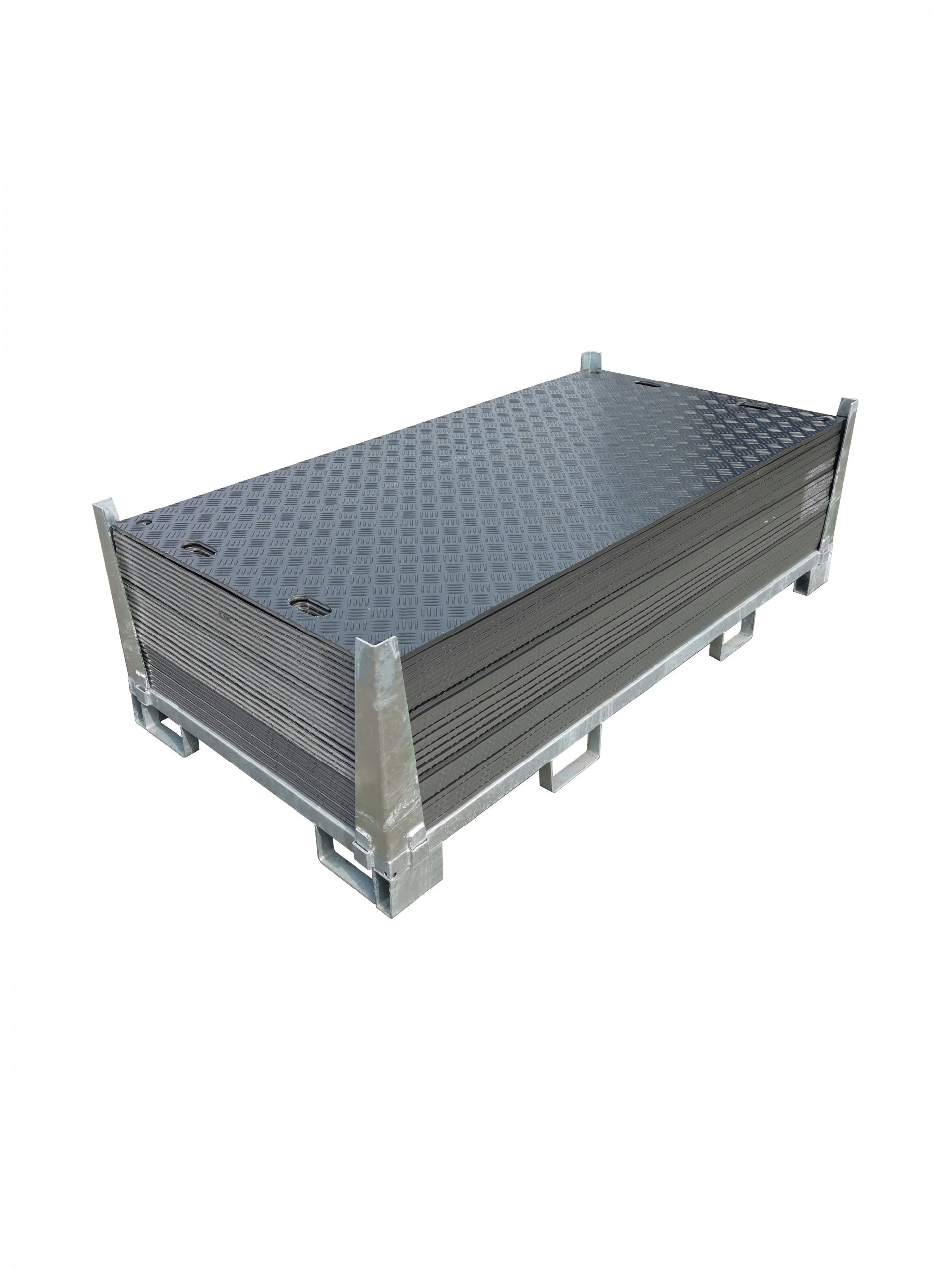 Fahrplatten-Set zum Erstellen von mobilen Zufahrtswegen, Baustraßen oder temporären Fahrwegen.