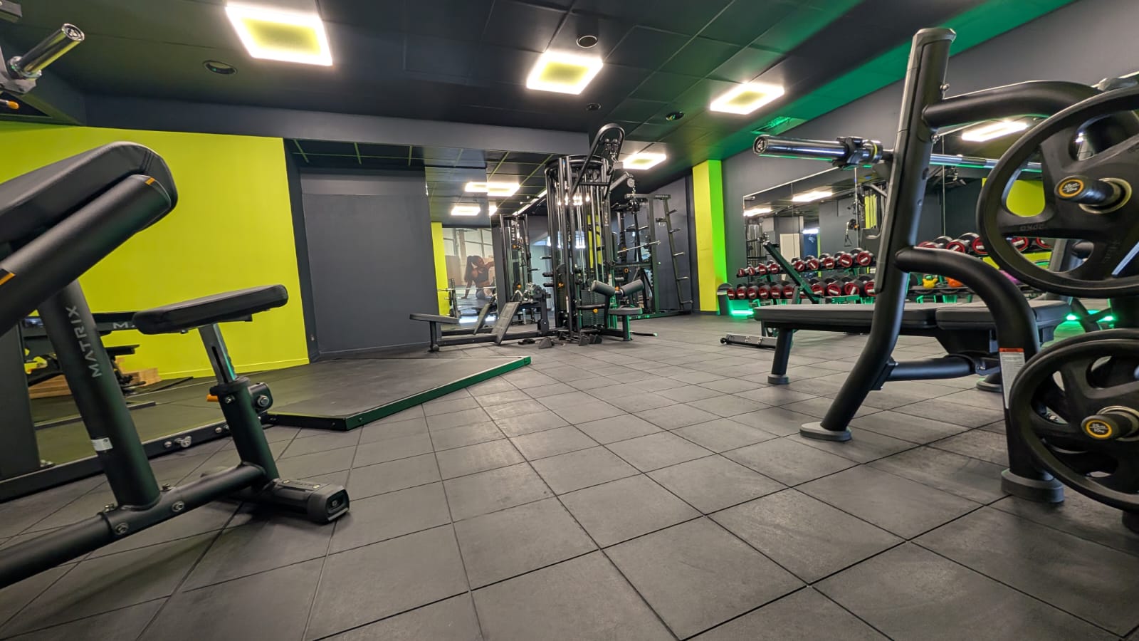 Das rutschfeste Vollgummi - Material und der Steinoptik - Grip ist ideal für Fitnessräume und Sportplätze geeignet.